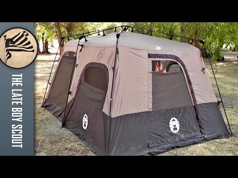 Music. We're in a very noisy, very populated outdoor camping area today. Lots of fathers, lots of sons, having a great time. Some friends in my community all got together for this family camping trip and here I am with my father, or me and my boys as a father, and with my two sons out here to do a quick review of the Coleman easy up 8 person tent. This is the 10 by 14 variety. They make several of these. This is the one that I chose. I'm going to talk about why I chose it and also talk about some of the specs, some of the features on it. If I miss anything, I'll have those details on screen or down in the description. I also have a link to buy it down in the description if you're interested in it. We're just going to do our best to cover everything about this tent and sort of my experience with it. We've had this out on, I want to say, four outings. Definitely four outings, this one included. And one of those was actually a torrential downpour, so we got soaked all night. I mean, this thing got rained on all night long. And then on one of the other outings, it actually was freezing overnight, and that was full of scouts. But the scouts did okay in it. So this tent has been through all types of camping, and it's held up really well throughout all of that. So we'll talk about sort of the construction of it. You can see that all the poles are here on the outside, and you can see how those are connected to the tent by these little clips. And it has sort of a central point right there at...
